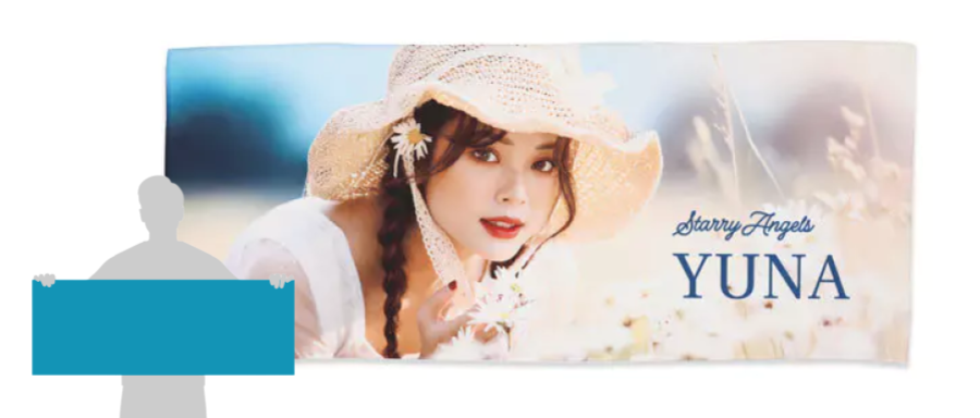 昇華転写対応で、写真やイラストの再現性が高いタオルです。イベントグッズやアーティストグッズに最適で、細かい部分まで美しく印刷できます。大判サイズなのでインパクトのある仕上がりです。