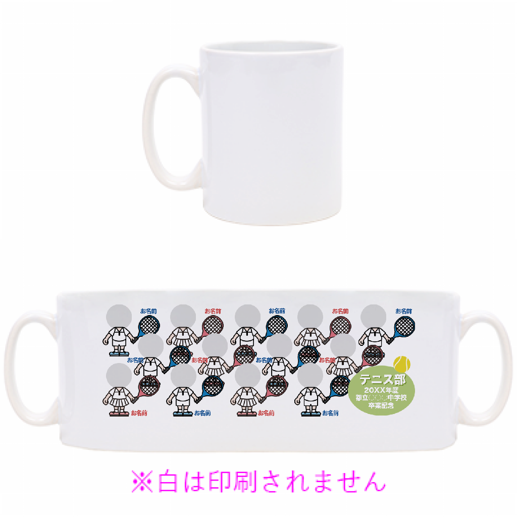 テニス部みんなの顔写真が入る記念マグカップをオリジナルでプリント 卒団記念のテンプレート