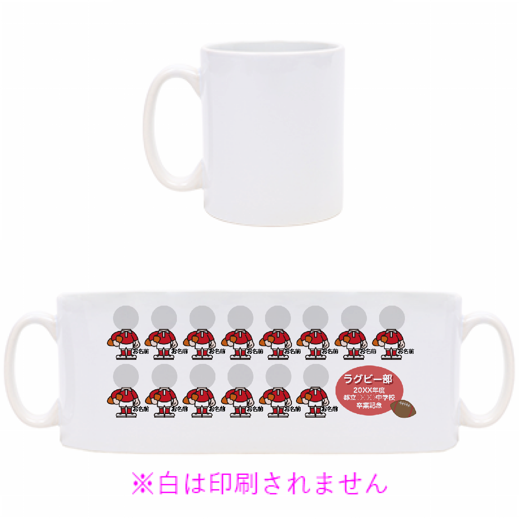ラグビー部チームメイトの顔写真が入れられる記念マグカップをオリジナルでプリント 卒団記念のテンプレート