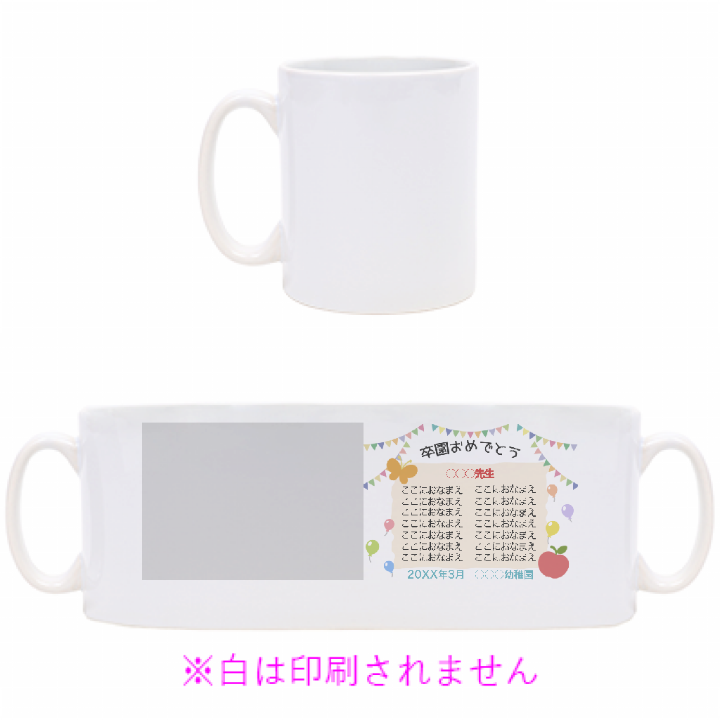 制服姿にみんなの顔写真を入れられる卒園マグカップをオリジナルでプリント 卒園祝いのテンプレート