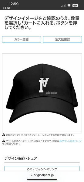 どうしても欲しいイメージしていたキャップが売っていなかったので、こちらで作成!すごく安く、思った通りに仕上がって大満足です!ありがとうございました!