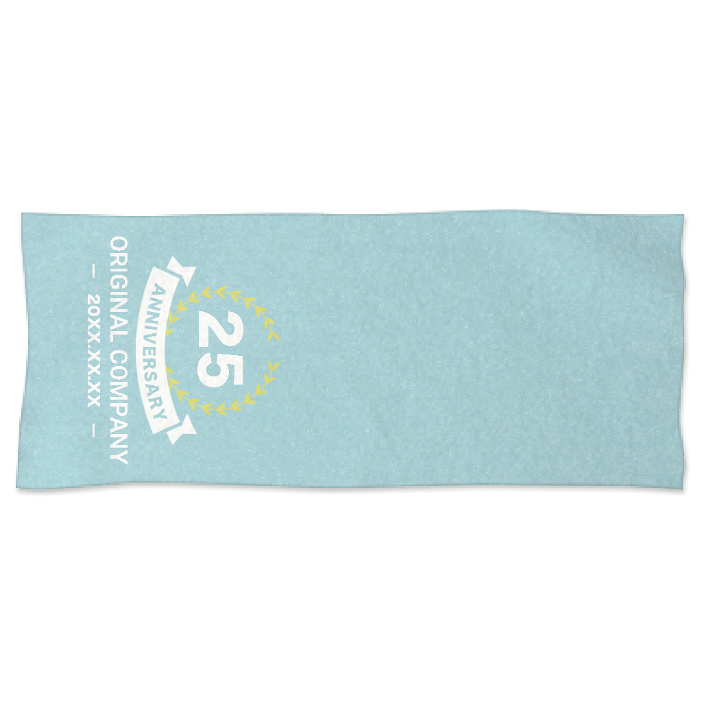 企業の創立記念やショップの周年イベントに最適な、インパクトのあるロゴデザインです。ロゴの下には、企業名、日付、メッセージをサブタイトル風に入れることができます。ロゴの数字やテキスト、タオル本体やプリントの色はブランドイメージに合わせて自由に変更可能です。