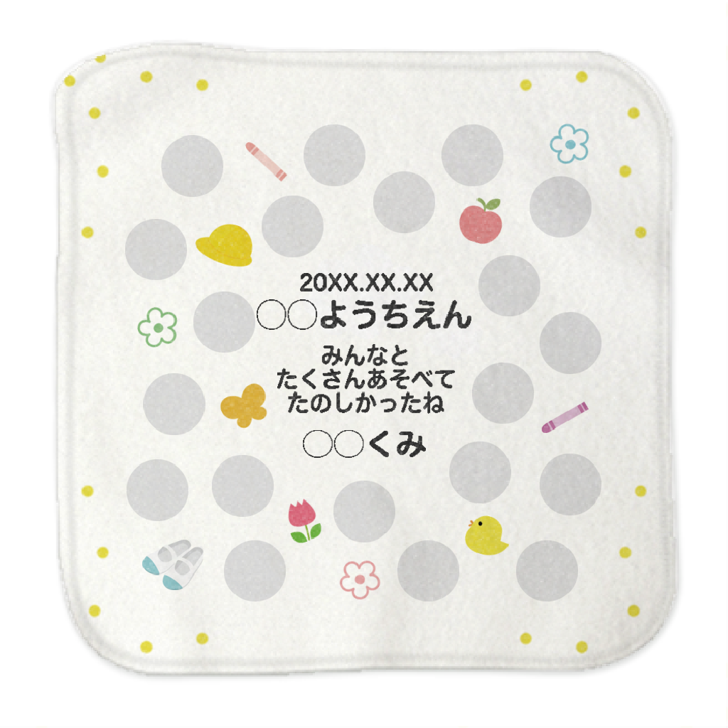 かわいいイラストとみんなの写真入りハンカチタオルをオリジナルでプリント 卒園祝いのテンプレート