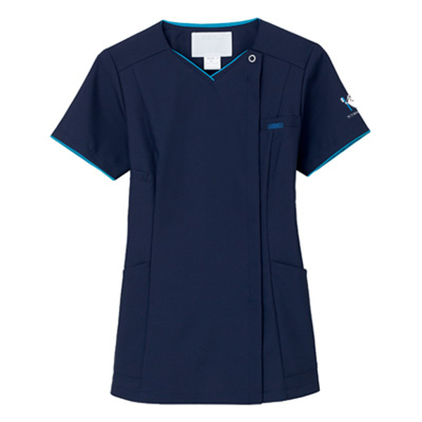 襟もとや袖まわりにさりげなく効かせた差し色がシャープなシルエットのおしゃれなレディスジップスクラブ。